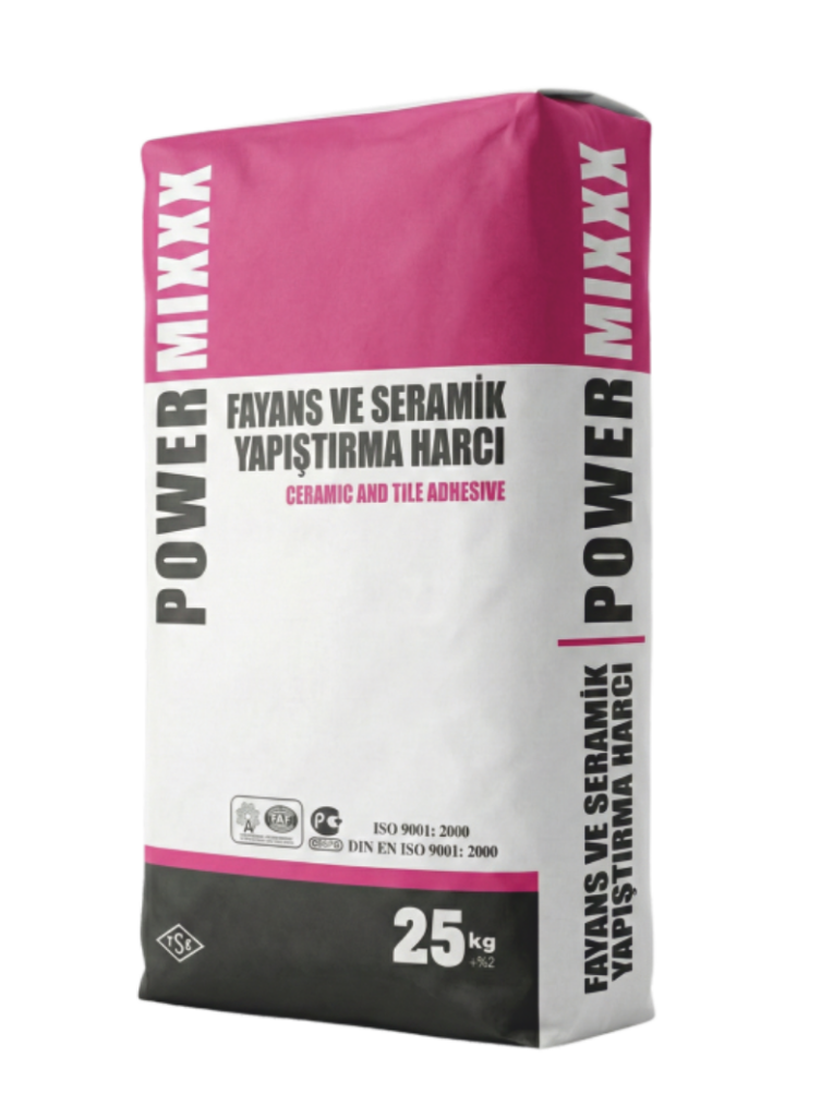 Çimento esaslı, polimer katkılı, yüksek yapışma mukavemetine sahip seramik ve fayans yapıştırma harcıdır.